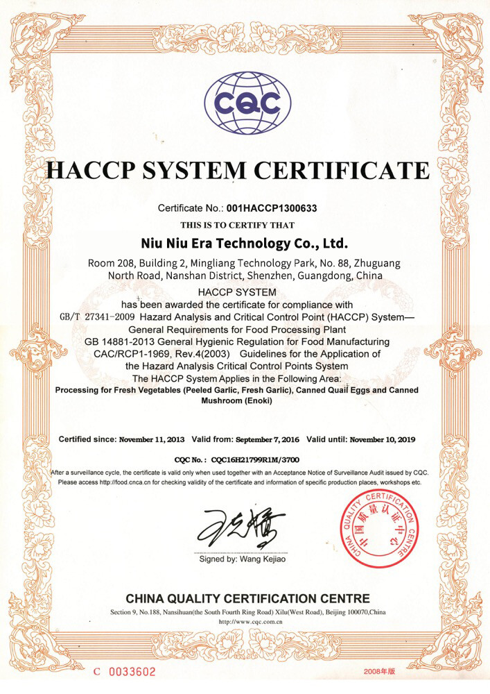 Niu Niu Era Technology Co., Ltd. расположена в Шэньчжэне, провинции Гуандун, на базе экспорта сельскохозяйственной продукции Китая. Это комплексное экспортно-ориентированное предприятие, специализирующееся на выращивании, хранении, переработке и импорте-экспорте сельхозпродукции. Сельскохозяйственная продукция, перерабатываемая и экспортируемая компанией, хорошо известна на рынках Европы, Америки, Ближнего Востока и Юго-Восточной Азии.